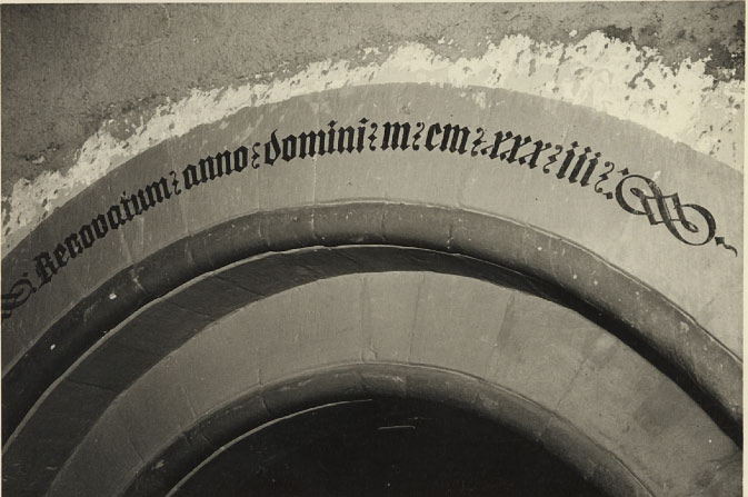 Vorzeichen: Portalinschrift vor der Aussenrenovation 1957 "Renovatum - anno - domini - M - CM - XXX - III (1933)" ◄ Back Next ► Picture 19 of 21 Vorzeichen: Portalinschrift vor der Aussenrenovation 1957 "Renovatum - anno - domini - M - CM - XXX - III (1933)"