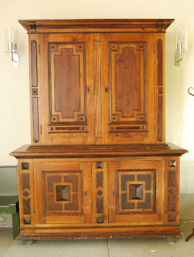 Vorzeichen: Ehemaliger Sakristeischrank aus dem Jahre 1896, erstellt für 180 Fr. durch Schreiner J. Huber aus Islikon. Seit 1991 steht er im Vorzeichen.