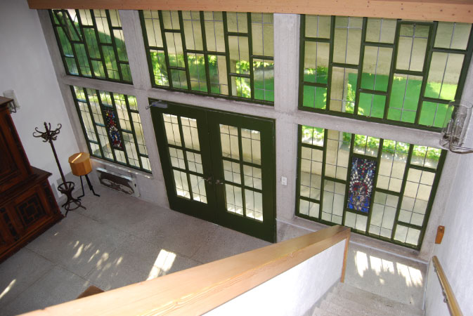 Vorzeichen: Fensterwand mit Haupteingang zur Kirche ◄ Back Next ► Picture 42 of 68 Vorzeichen: Fensterwand mit Haupteingang zur Kirche