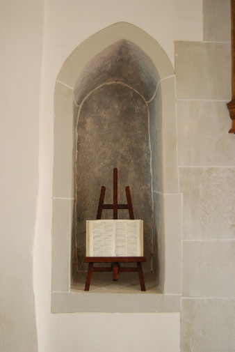 Kirchenschiff: Ehemalige Mariennische, bei der Innenrenovation 1974 freigelegt. Heute Bibelnische. ◄ Back Next ► Picture 56 of 68 Kirchenschiff: Ehemalige Mariennische, bei der Innenrenovation 1974 freigelegt. Heute Bibelnische.