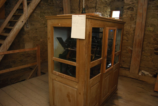 Zweites Turmgeschoss (Uhrengeschoss): Turmuhrkasten von vorne ◄ Back Next ► Picture 24 of 108 Zweites Turmgeschoss (Uhrengeschoss): Turmuhrkasten von vorne