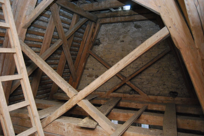 Turmdachboden: südlicher Bereich des zweiten Turmdachgeschosses ◄ Back Next ► Picture 58 of 108 Turmdachboden: südlicher Bereich des zweiten Turmdachgeschosses